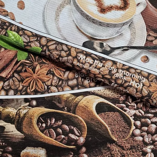 Popis k výrobku: Utěrkovina KÁVA ZRNA tm., cena za 1 metr