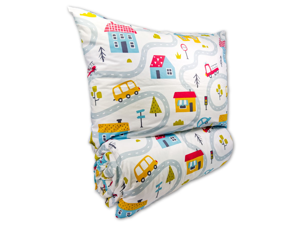 Bavlněné dětské povlečení do malé postýlky 90x135, 45x60 cm Městečko